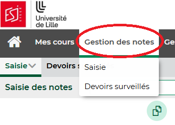 Pour saisir vos appréciations, cliquez d’abord sur Gestion des notes :