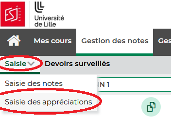 Puis dans le sous-onglet Saisie, cliquez sur Saisie des appréciations :